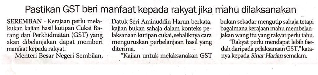 Tajuk :Pastikan GST beri manfaat kepada rakyat jika mahu dilaksanakan