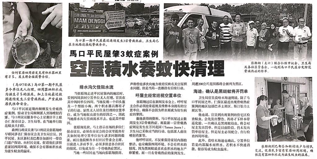 Tajuk :Bahau: YB Tuan Teo Kok Seong menyeru kepada orang ramai agar menjaga kebersihan sekitar kediaman dan juga memastikan tiada takungan air.