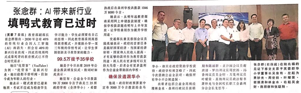 Tajuk :Timbalan Menteri Pendidikan YB Teo Nie Ching serta YB Teo Kok Seong,YB Loke Siew Fook, YB Nicole Tan Lee Koon, YB Cha Kee Chin, YB Ng Chin Tsai, YB Yap Yew Weng dan YB Chew Seh Yong menghadiri Majlis penyerahan bantuan kewangan daripada The Community Chest kepada 35 buah Sekolah Jenis Kebangsaan Cina Negeri Sembilan.