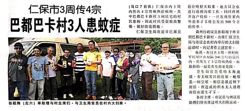 Tajuk :YB Tuan Teo Kok Seong menghadiri gotong- royong dan juga mengedarkan risalah pencegahan penyakit denggi kepada penduduk di Rumah Rakyat Bahau dengan kerjasama Pejabat Kesihatan Daerah Jempol dan Majlis Perbandaran Jempol