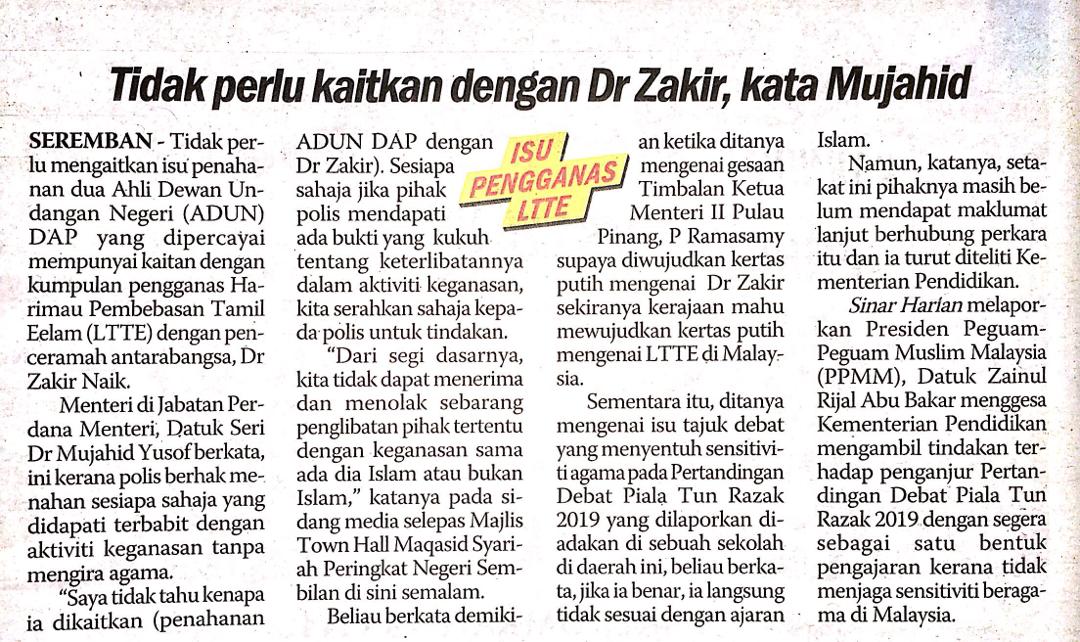 Tajuk :Tidak perlu kaitkan dengan Dr. Zakir, kata Mujahid