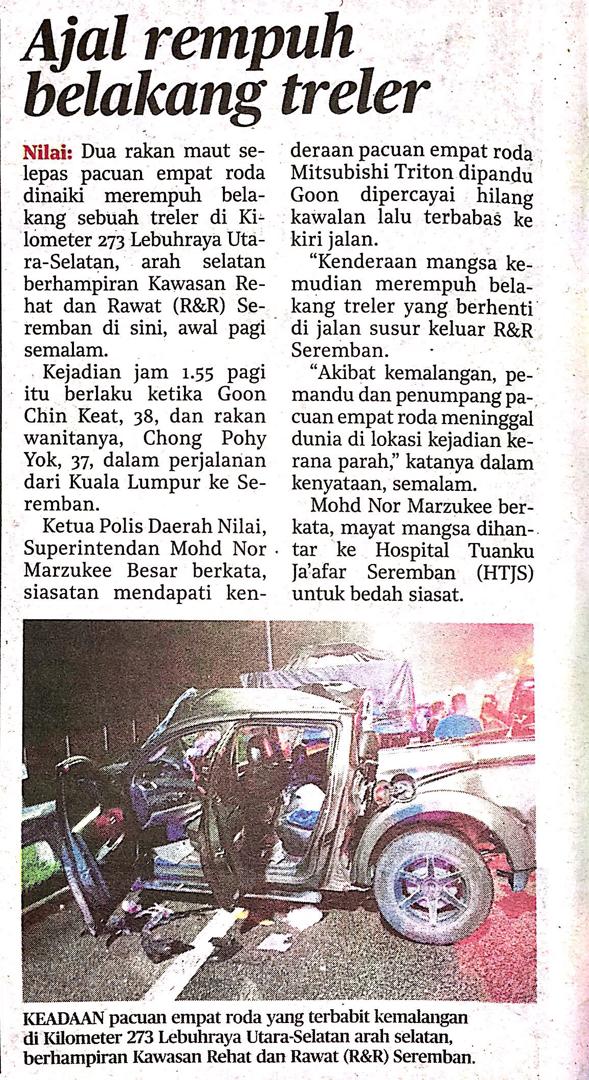 Tajuk :Dua maut pacuan empat roda rempuh lori