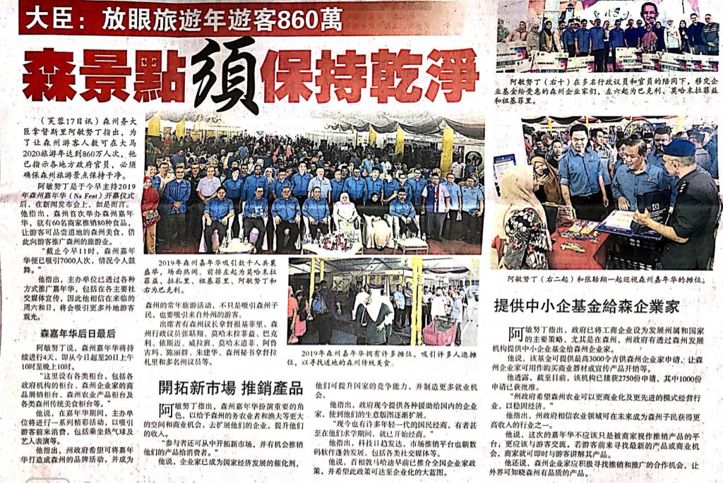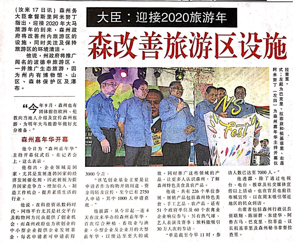Nilai:Kerajaan Negeri Sembilan sedang giat melakukan persediaan menjelang Tahun Melawat Malaysia 2020 (TMM 2020) termasuk menaik taraf pusat-pusat pelancongan dan juga memastikan kebersihan tempat tumpuan termasuk di bandar-bandar kata MBNS selepas merasmikan NS Fest 2019.
