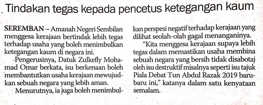 Tajuk :Tindakan tegas kepada pencetus ketegangan kaum