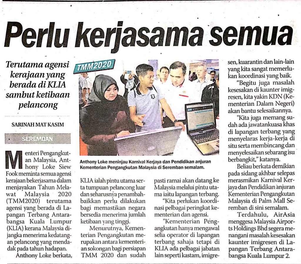Tajuk :Seremban Menjelang Tahun Melawat Malaysia 2020,persediaan rapi daripada semua pemain industri dalam sektor pengangkutan perlu dilakukan bermula dari sekarang, kata YB Tuan Loke Siew Fook selaku Menteri Pengangkutan
