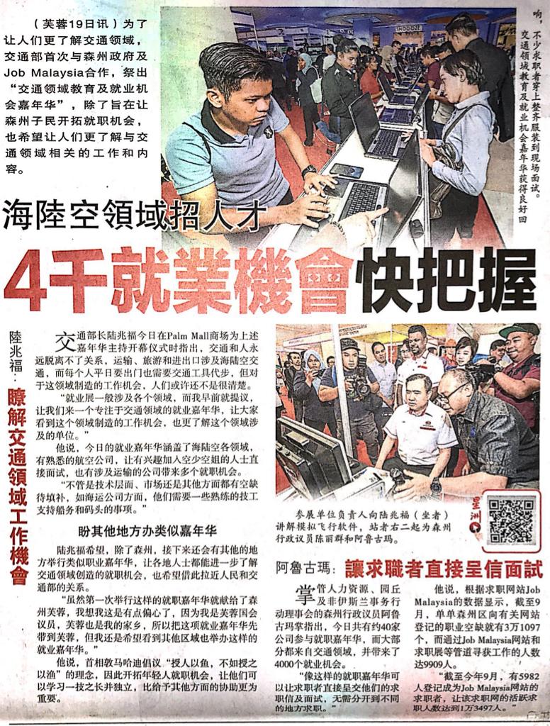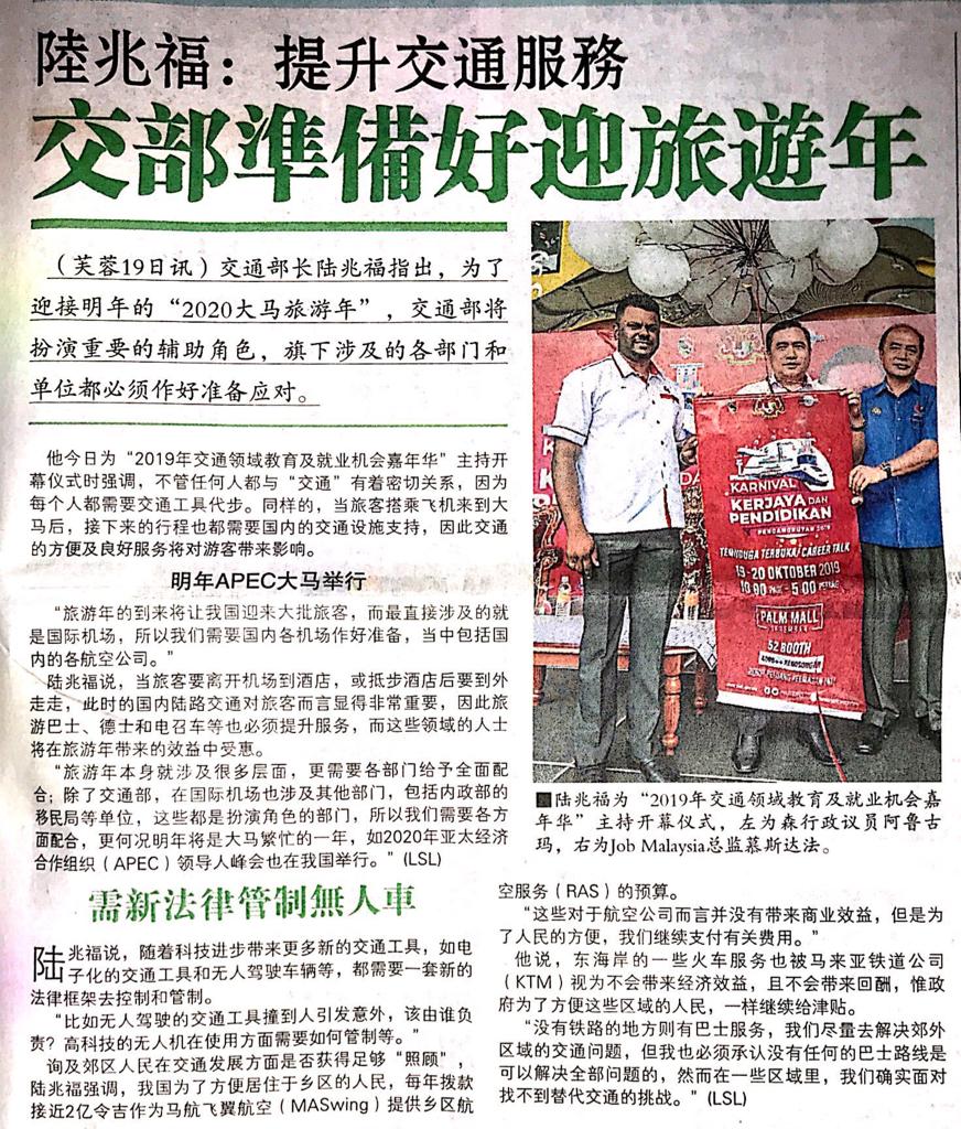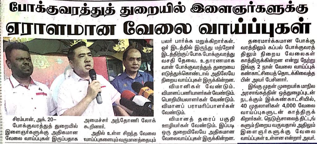 Tajuk :Seremban YB Tuan Loke Siew Fook telah merasmikan Karnival Kerjaya dan Pendidikan (Sektor Pengangkutan) 2019) turut hadir bersama YB Tuan Arul Kumar. YB Tuan Loke Siew Fook berkata banyak peluang pekerjaan yang boleh