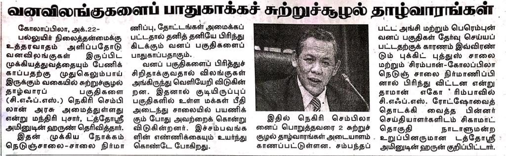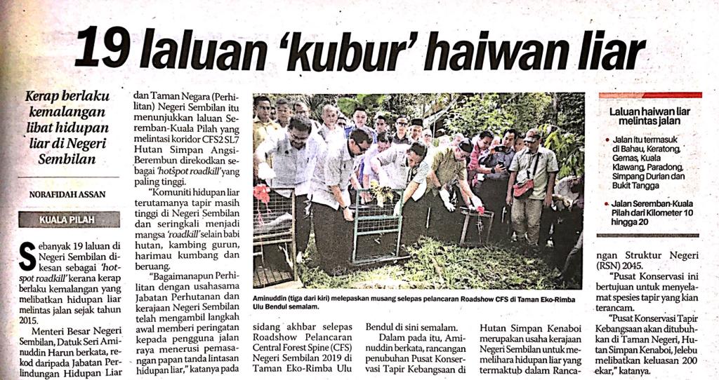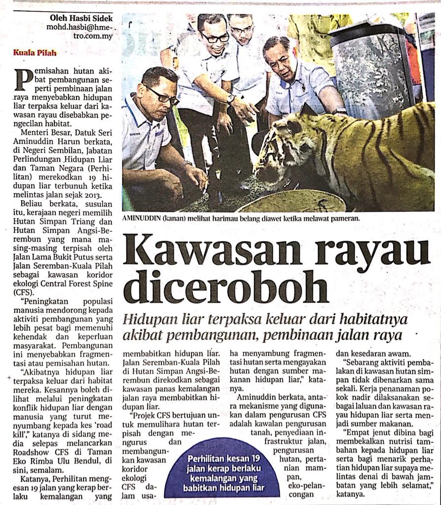 Tajuk :Kuala Pilah Kerajaan Negeri Sembilan menubuhkan kawasan koridor ekologi Central Forest Spine(CFS) yang bertindak sebagai tulang belakang rangkaian kawasan sensitif alam sekitar bagi menjamin kelestarian biodiversiti