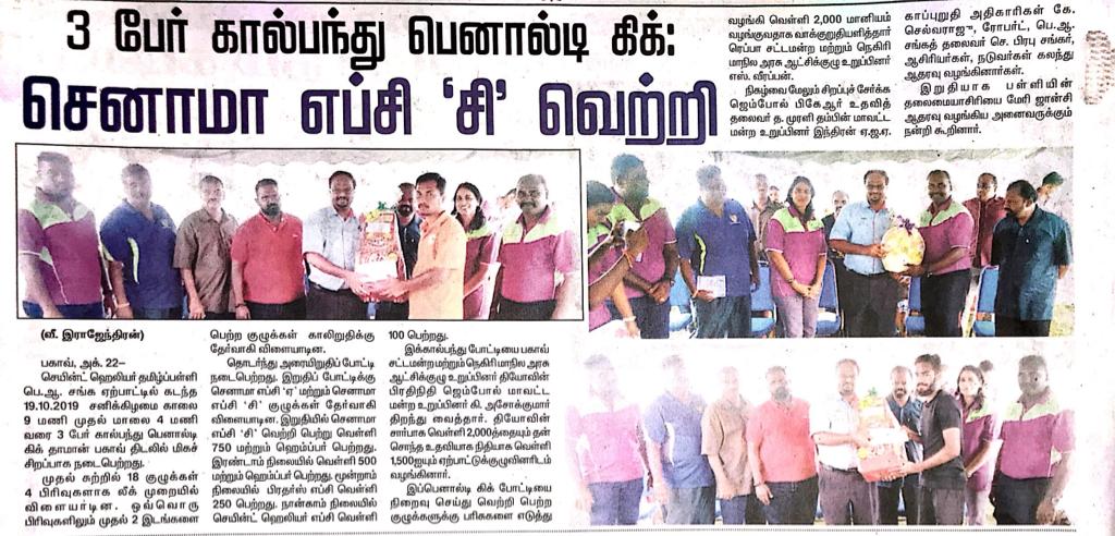 Tajuk :Bahau Sekolah Jenis Kebangsaan Tamil St Heler telah menganjurkan Kejohanan Penalty Kick Tournament. Majlis tersebut dirasmikan oleh YB Tuan Veerapan