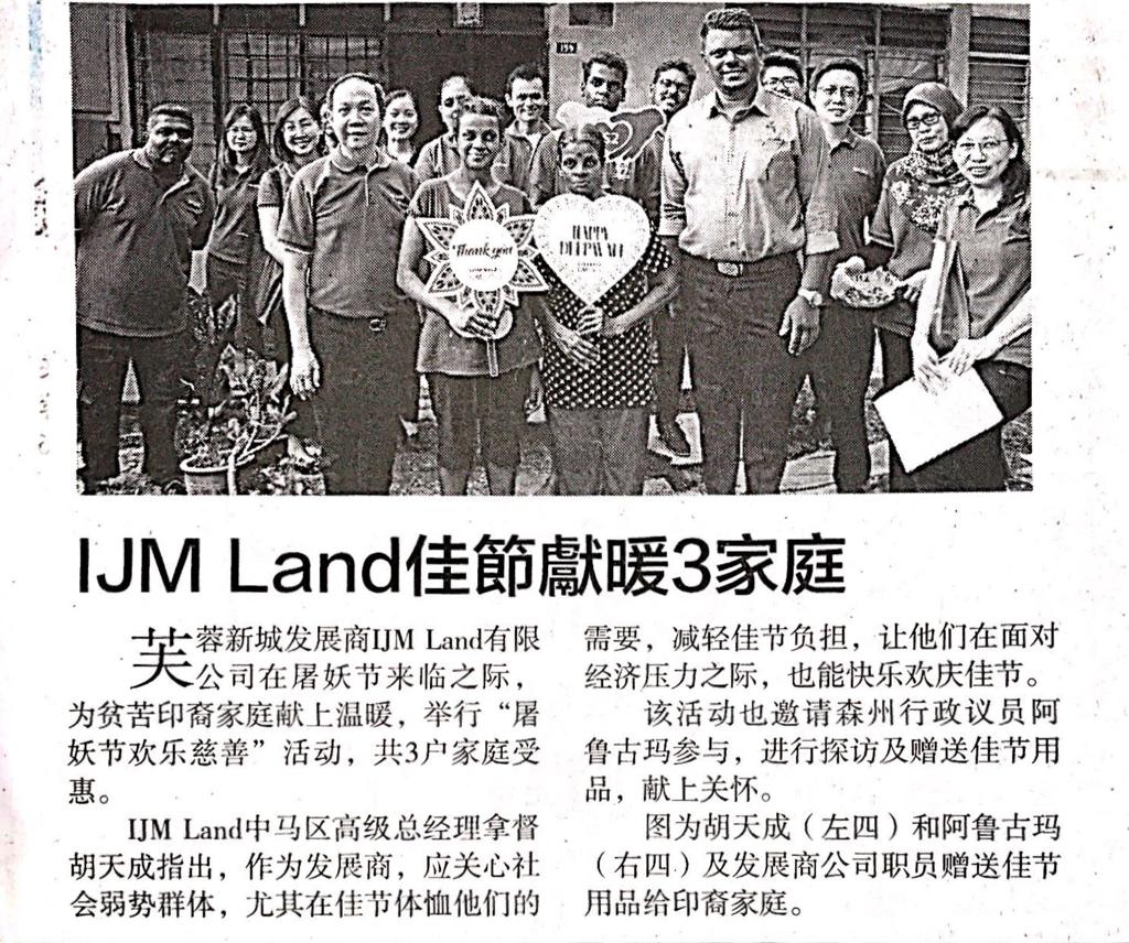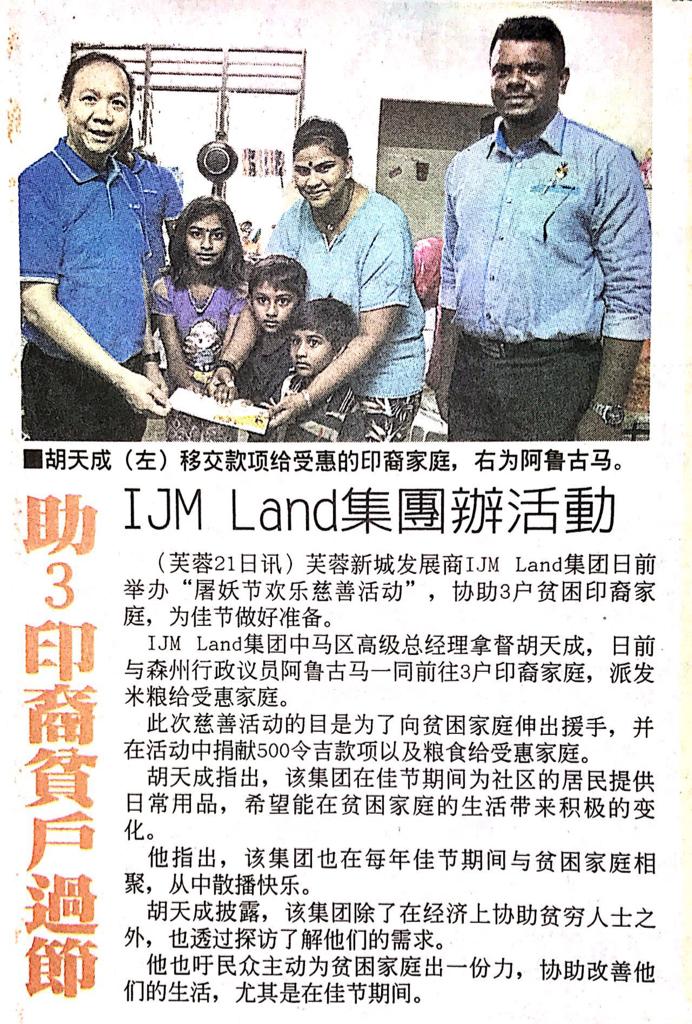 Tajuk :Seremban IJM Land memberi bantuan kepada rakyat yang memerlukan sempena sambutan perayaan Deepavali yang akan datang. IJM Land juga turut menjemput YB Tuan Arul Kumar ke program ini untuk bersama-sama menyampaikan bantuan