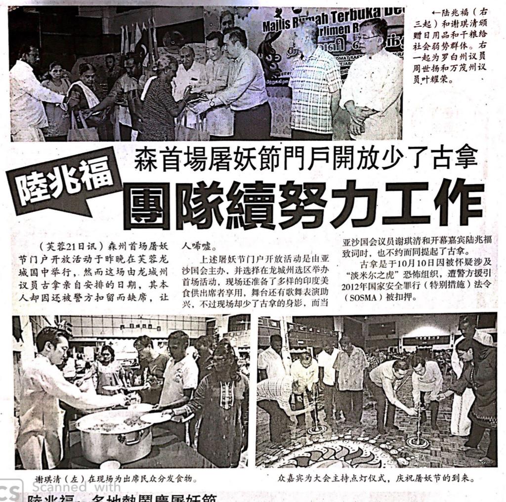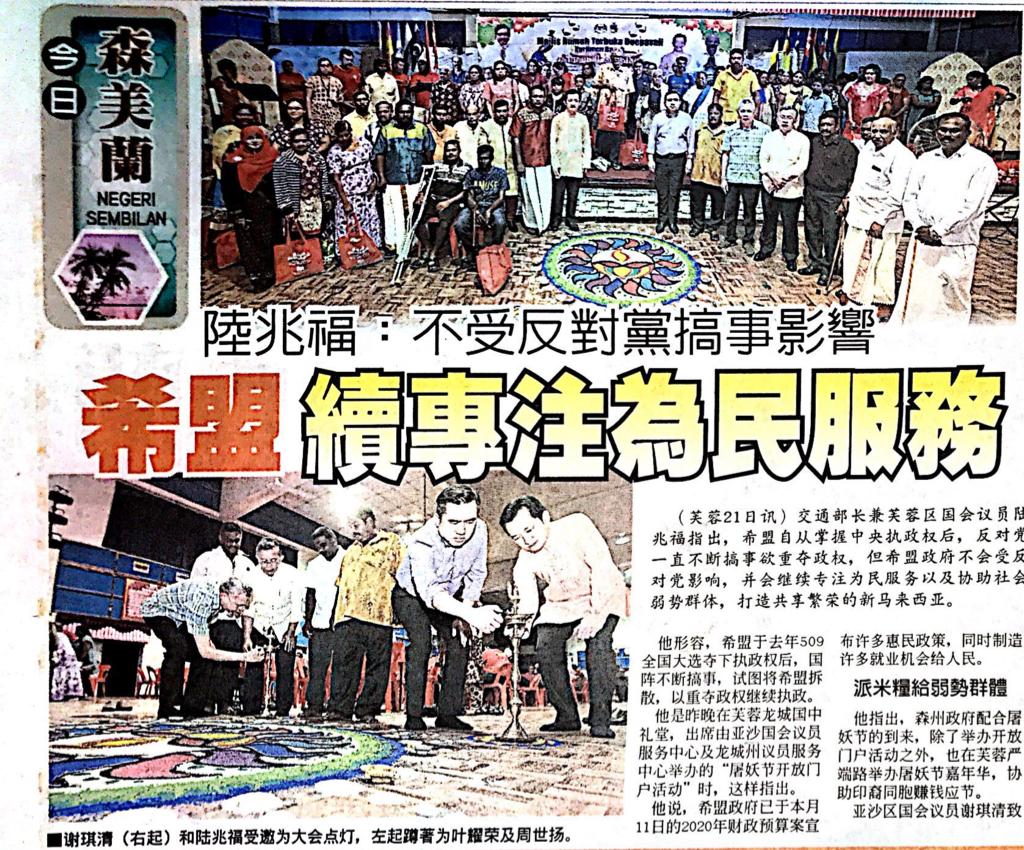 Tajuk :Seremban Majlis Rumah Terbuka Deepavali Parlimen Rasah kerjasama dengan Adun Seremban Jaya. Dihadiri oleh YB Tuan Loke Siew Fook, YB Tuan Cha Kee Chin, YB Tuan Yap Yew Weng dan YB Tuan Chew Seh Yong.