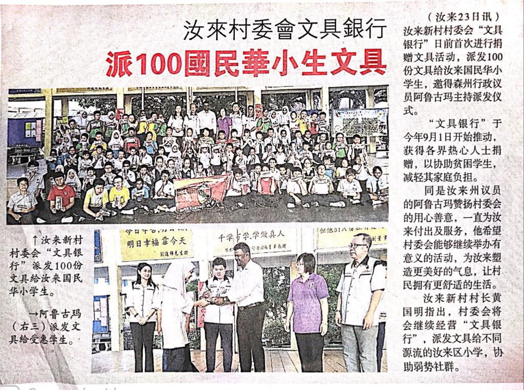 Tajuk :Nilai: YB Tuan Arul Kumar menghadiri Program Stationary Bank yang dianjurkan oleh MPKK Kg Baru Nilai dengan kerjasama beberapa pihak lain dalam memberi bantuan alat tulis kepada pelajar sekolah di Sekolah Jenis Kebangsaan Cina Kuo Min,Nilai.