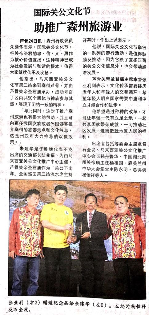 Tajuk :Port Dickson: YB Tuan Choo Ken Hwa menghadiri majlis perasmian Pesta Kebudayaan Guan Gong Antarabangsa Malaysia 2019. Sebanyak 50 kumpulan kuil menyertai pesta ini dan terdapat beberapa kumpulan kuil dari negara lain seperti Vietnam dan Thailand turut sertai pesta ini. Menurut beliau,pesta kebudayaan seperti ini juga boleh mempromosi aktiviti pelancongan di negara kita.