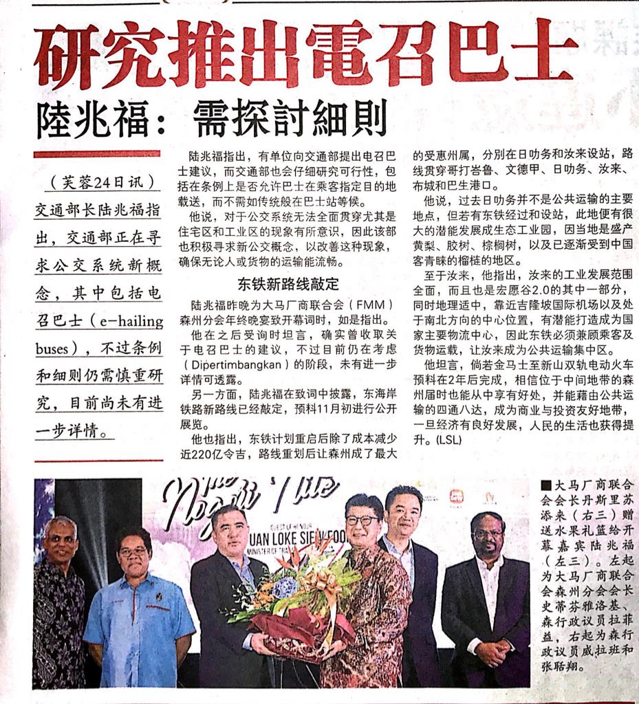 Tajuk :Seremban: YB Loke Siew Fook berkata dengan wujudnya Laluan Rel Pantai Timur(ECRL) ia dapat membantu dalam membangunkan kawasan perindustrian kecil di negera ini lebih-lebih lagi dalam industri pertanian. Beliau juga ada menyatakan sistem pengangkutan yang komprehensif, cekap dan selamat untuk negara secara tidak langsung boleh membantu dalam pembangunan negara.