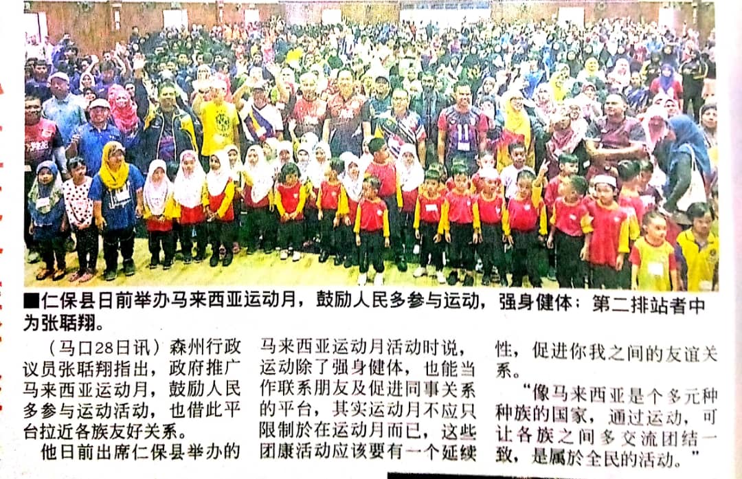 Tajuk :Jempol- YB Tn Teo Kok Seong dalam Majlis Sambutan Bulan Sukan Negara 2019 Peringkat Daerah Jempol dan Sambutan Hari Pemulihan Carakerja Peringkat Kluster Daerah Kuala Pilah/Jempol/Tampin bertempat di Kompleks Rakan Muda Daerah Jempol yang lalu.