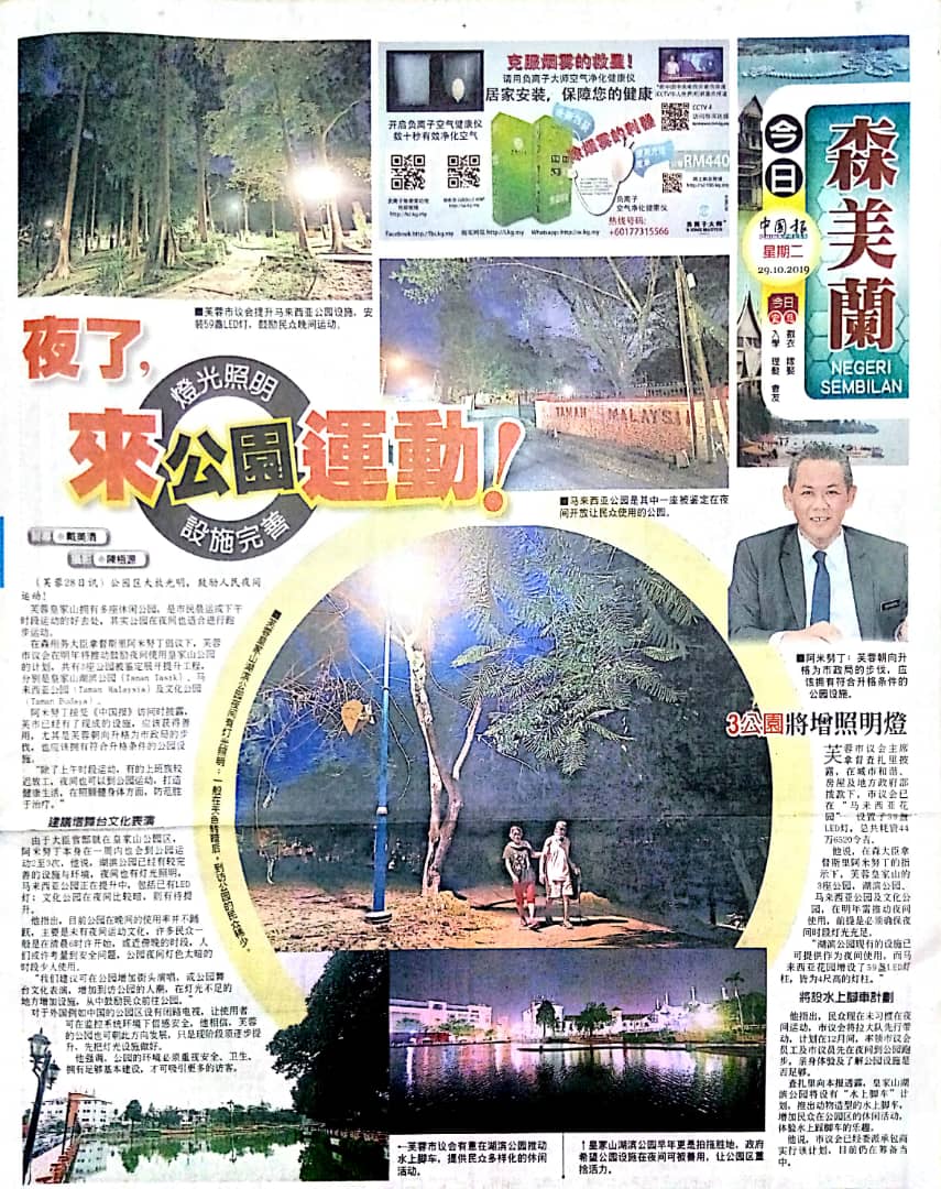 Tajuk :Seremban- MBNS menyeru masyarakat agar mengutamakan cara hidup sihat dan memanfaatkan kemudahan yang telah disediakan. Taman Malaysia yang terletak berhampiran Taman Tasik Seremban telah dibuka pada sebelah malam untuk kegunaan orang ramai yang ingin beriadah.