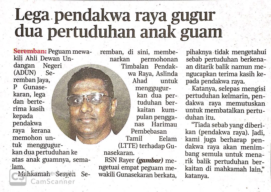 Tajuk :Lega pendakwa raya gugur dua pertuduhan anak guam