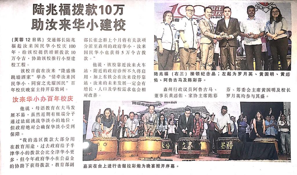 Tajuk :Nilai:YB Tuan Loke Siew Fook telah merasmikan Majlis Sambutan Ulang Tahun Ke 100 SJKC Kuo Min. Turut hadir bersama YB Tuan Arul Kumar.