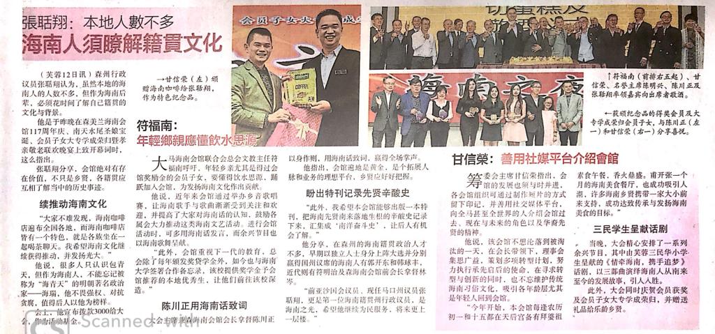 Tajuk :Seremban:YB Tuan Teo Kok Seong telah merasmikan Majlis Makan Malam sambutan Ulang Tahun ke 117 Persatuan Hainan Negeri Sembilan. Beliau berkata bahawa persatuan-persatuan yang telah wujud sejak lama dahulu hendaklak dipertahankan dan orang ramai perlu memahami fungsi persatuan-persatuan yang ada dlm negara.