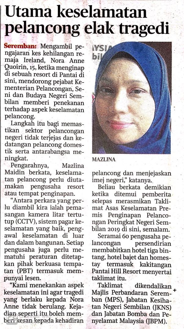 Tajuk :Utama keselamatan pelancong elak tragedi