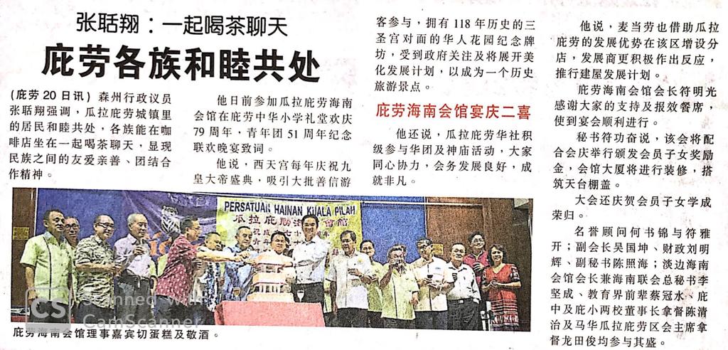 Tajuk :Kuala Pilah: YB Tuan Teo Kok Seong telah hadir merasmikan Majlis Makan Malam Sambutan Ulang Tahun ke-79 Persatuan Hainan Kuala Pilah.
