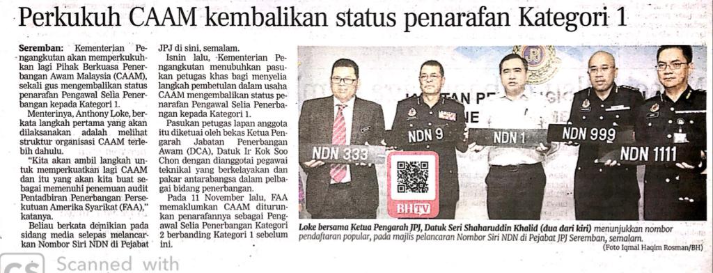 Tajuk :Perkukuh CAAM kembalikan status penarafan Kategori 1