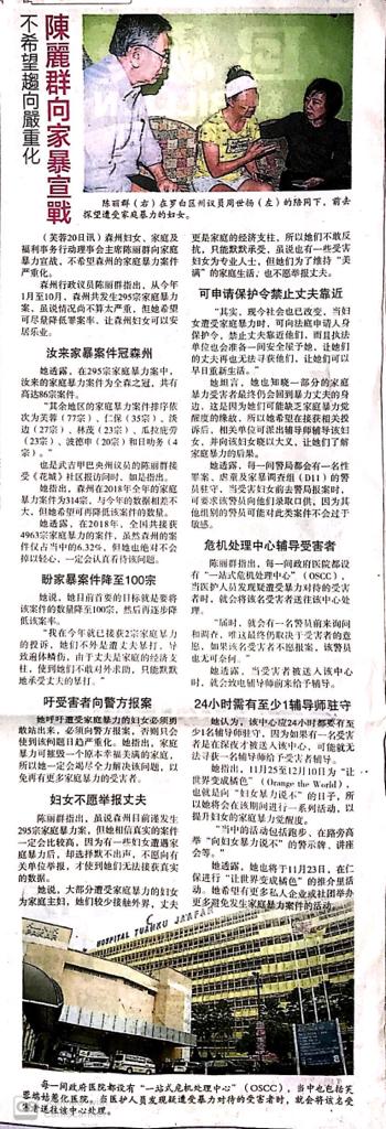 Tajuk :Seremban:YB Puan Nicole dan juga YB Tuan Chew Seh Yong melawat seorang wanita yang merupakan mangsa keganasan rumahtangga.