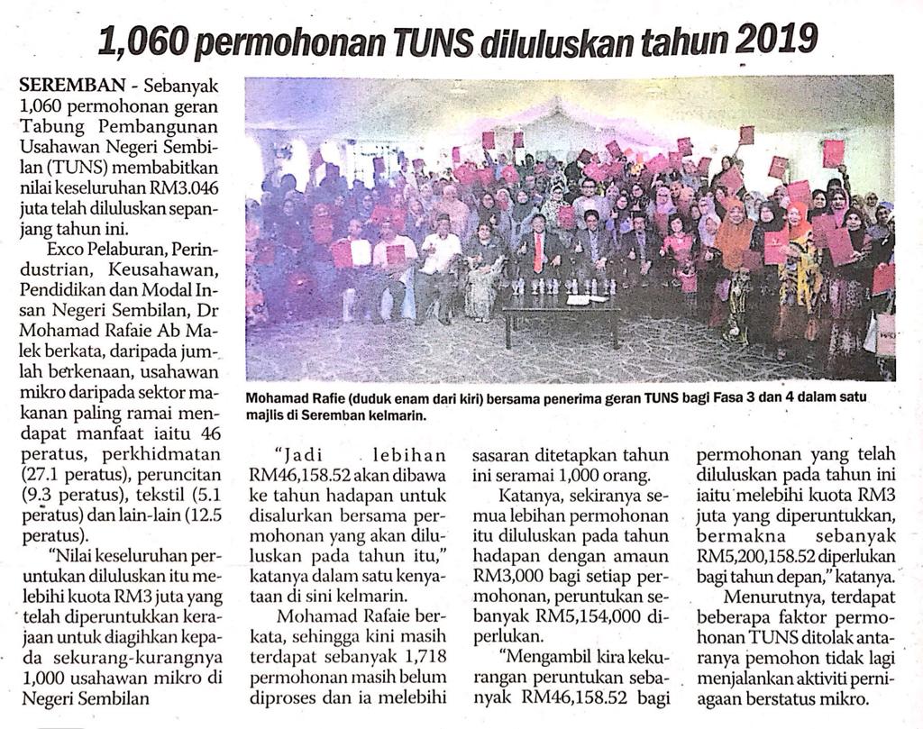 Tajuk :1,060 permohonan TUNS diluluskan tahun 2019