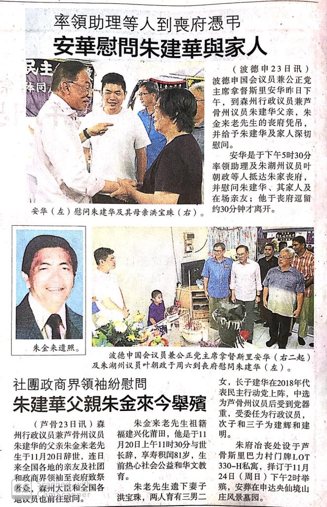 Tajuk :Port Dickson:Pada 22 November 2019,Jumaat lepas YB Dato Seri Utama Anwar telah menziarahi YB Choo Ken Hwa yang baru-baru ini telah kehilangan bapa beliau.
