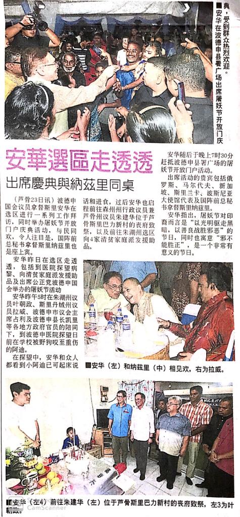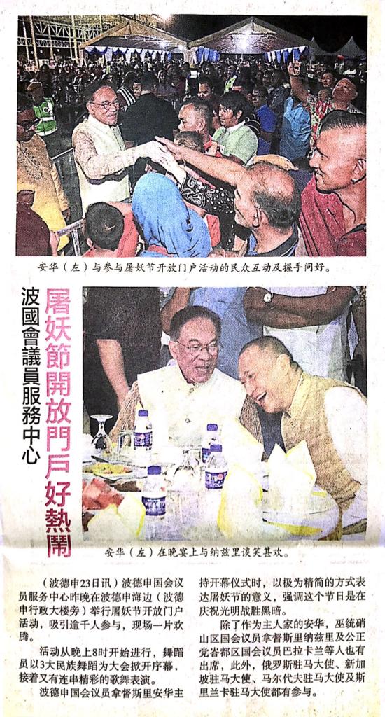 Tajuk :Port Dickson:YB Dato Seri Anwar pada 22 November 2019,Jumaat telah menghadiri Majlis Rumah Terbuka Deepavali Parlimen Port Dickson. Dimaklumkan,sebelum menghadiri program tersebut,beliau telah turun menziarahi beberapa kawasan seperti menziarahi adik Muhammad Adib Asyraf yang merupakan mangsa serang anjing liar di Port Dickson dan beliau juga telah menyertai program Ziarah Kebajikan di kawasan Chuah. Selain itu beliau juga menziarahi YB Choo Ken Hwa yang baru-baru ini telah kehilangan bapa beliau.