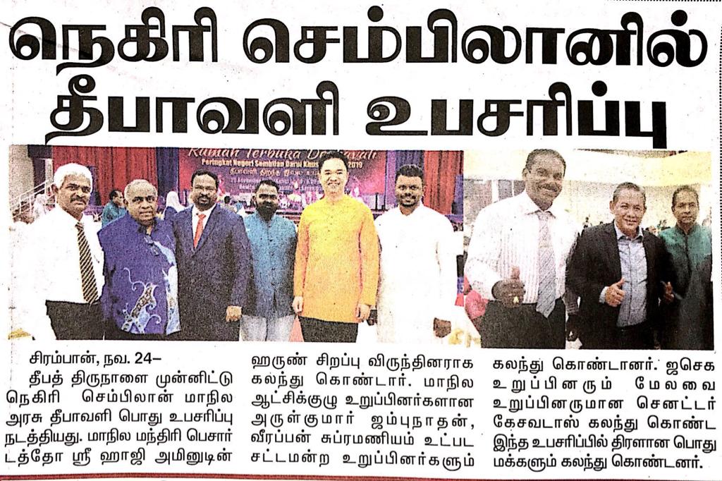 Tajuk :Seremban:MBNS telah menghadiri Majlis Rumah Terbuka Deepavali yang berlansung di Dewan MPS,Seremban pada 20 November 2019,Rabu lepas.Turut sama hadir YB Tuan Teo Kok Seong,YB Tuan Veerapan dan juga YB Tuan Arul Kumar.