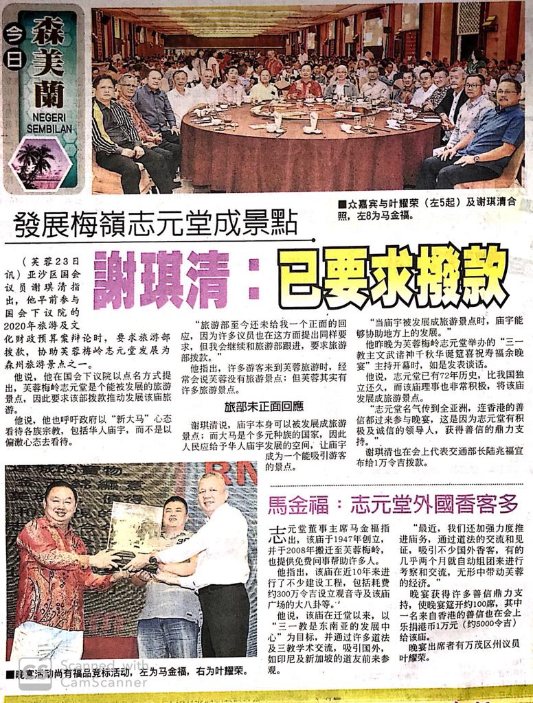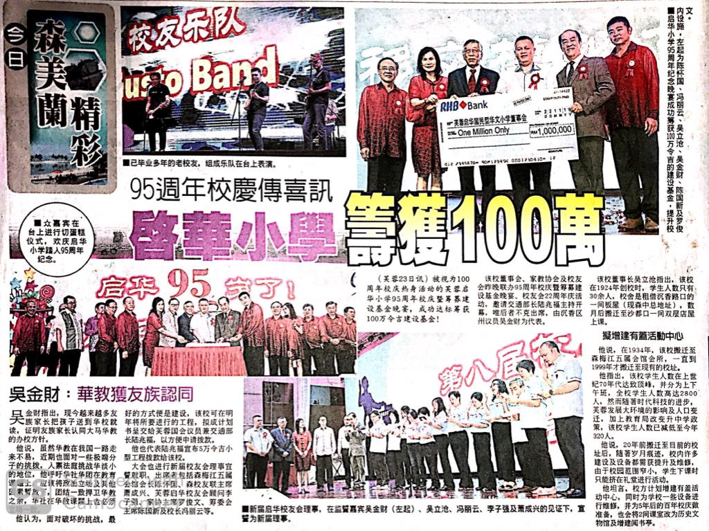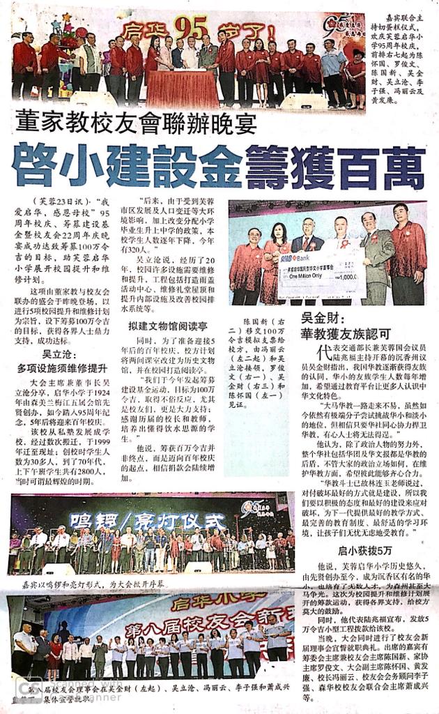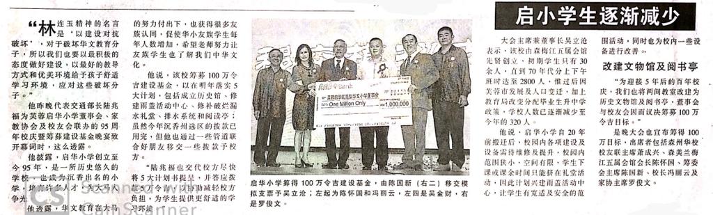 Tajuk :Seremban:YB Tuan Ng Chin Tsai telah menghadiri Majlis Sambutan Ulang Tahun Alumni Qihua dan juga penyampaian Dana Pembinaan yang telah dikumpul oleh pihak sekolah SJKC Qihua bagi kerja-kerja pembaikan bangunan dan kemudahan di sekolah mereka.