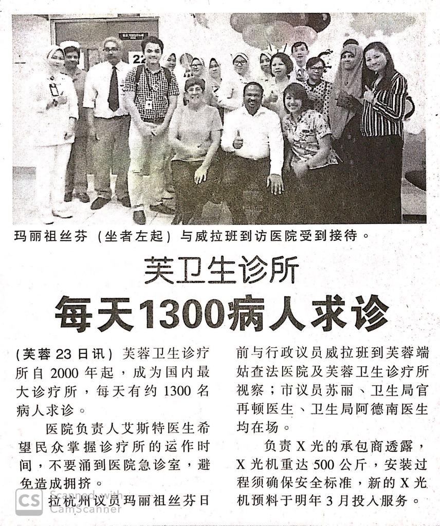 Tajuk :Seremban:YB Tuan Veerapan dan juga YB Puan Mary Josephine bergambar bersama kakitangan Klinik Kesihatan Seremban. Dinyatakan Klinik Kesihatan Seremban telah menerima kunjungan pesakit dalam 1300 pada setiap hari.