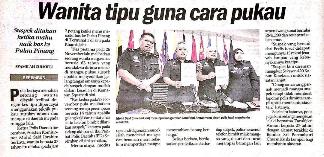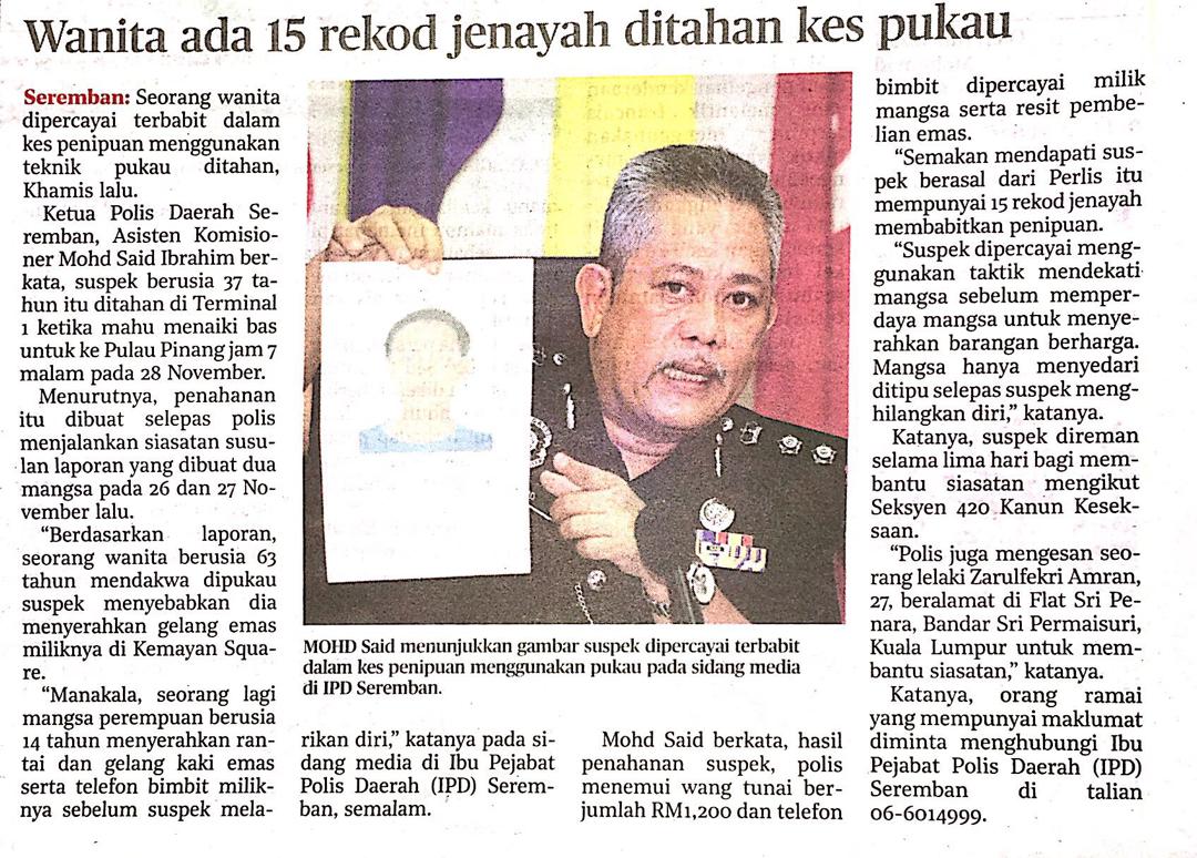 Tajuk :Wanita ada 15 kes rekod jenayah ditahan kes pukau