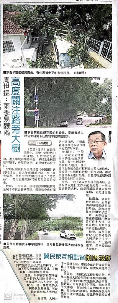 Tajuk :Seremban:YB Tuan Chew Seh Yong berkata masalah pokok terbiar di tepi jalan perlu diberi perhatian.