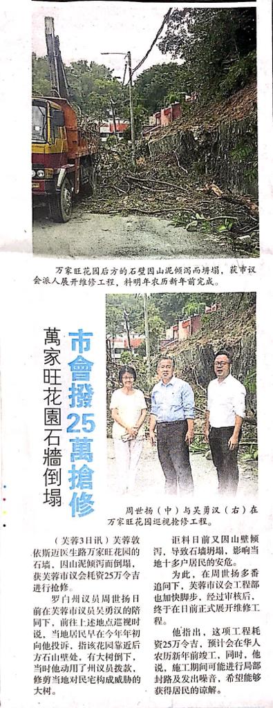 Tajuk :Seremban:YB Tuan Chew Seh Yong telah turun melihat kawasan dimana kejadian dinding batu telah runtuh berlaku,di sebuah taman di Jalan Dr Ismail.