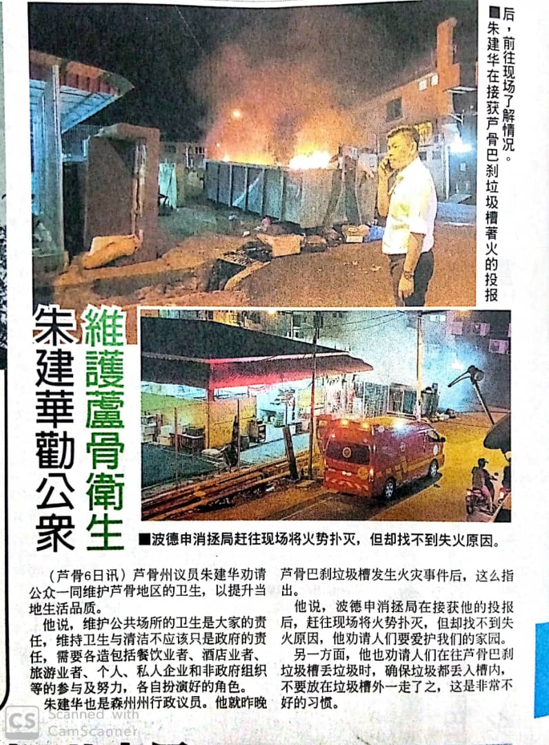Tajuk :Port Dickson- YB Tn Choo Ken Hwa turut berada di tempat kejadian kebakaran dan bersama orang ramai memadamkan kebakaran.