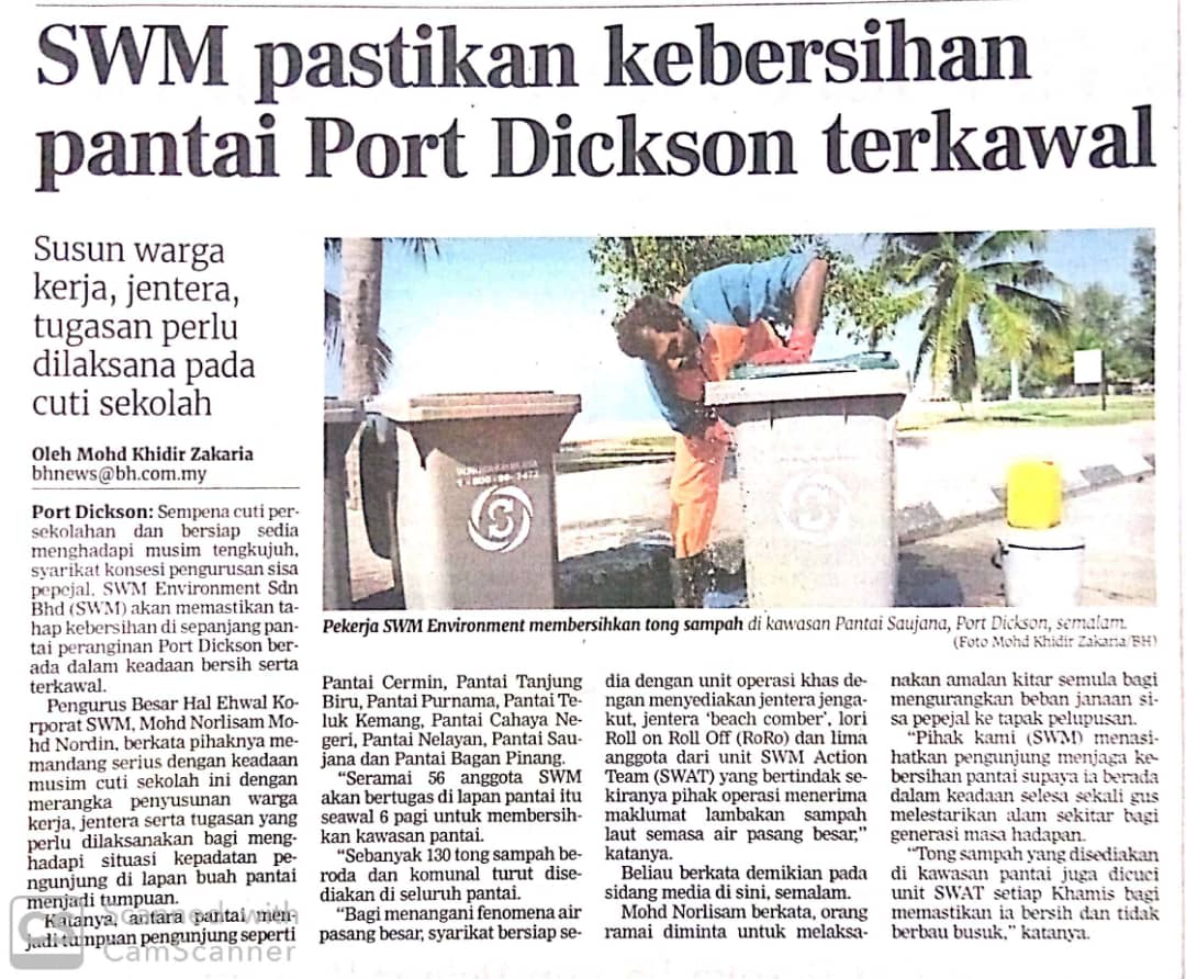 Tajuk :SWM pastikan kebersihan pantai Port Dickson terkawal