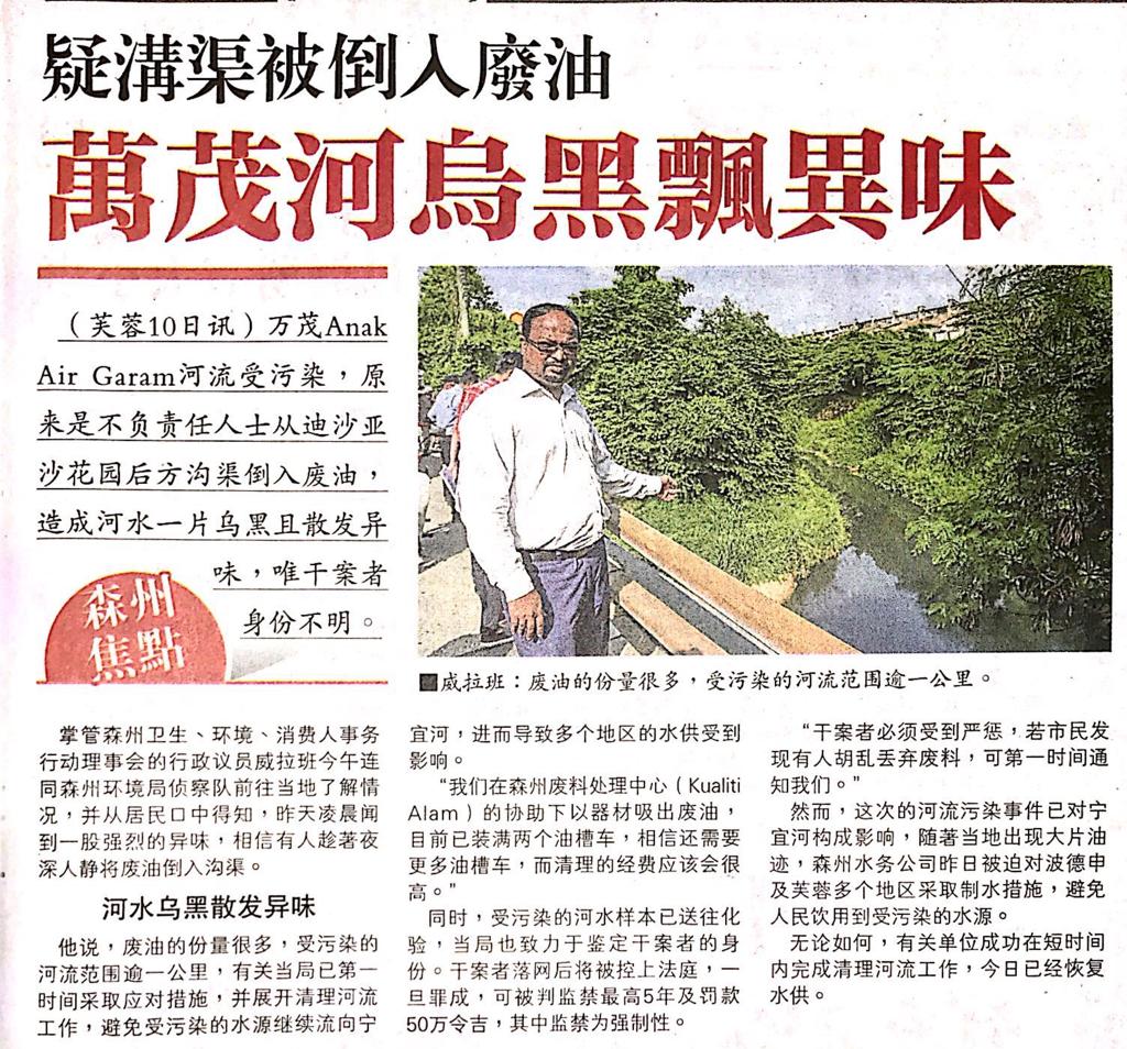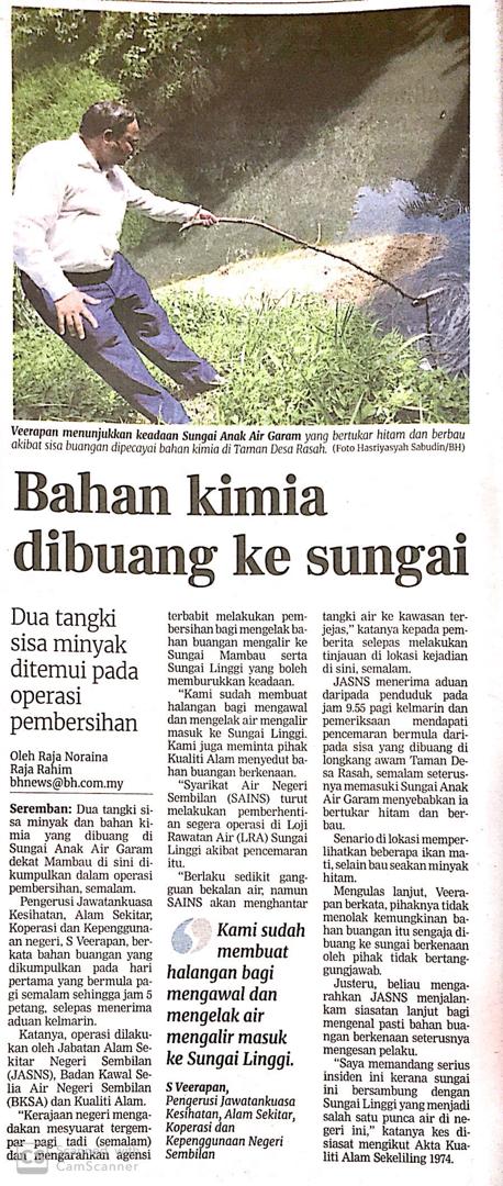 Tajuk :Seremban:YB Tuan Veerapan telah turun meninjau kawasan pencemaran di Sungai Anak Air Garam.