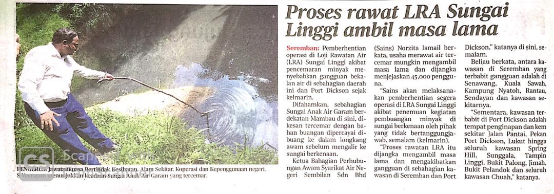 Tajuk :Proses rawat LRA sungai Linggi ambil masa lama