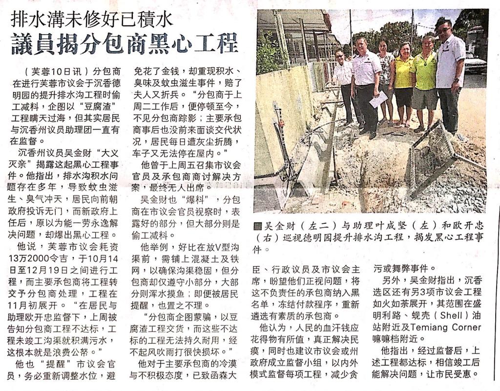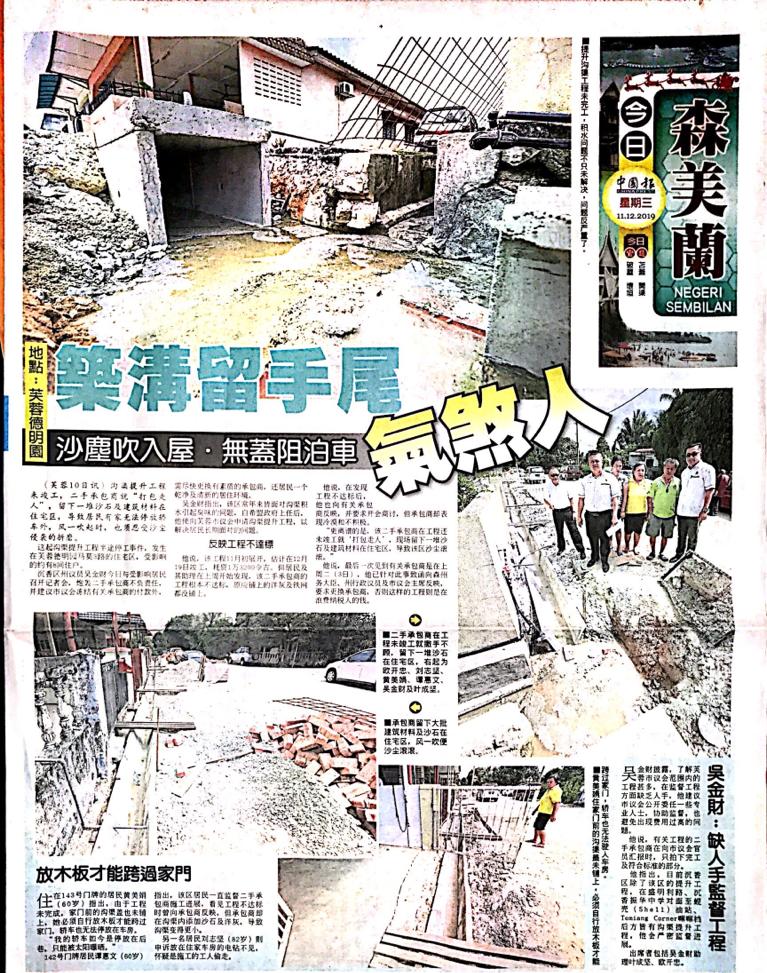 Tajuk :Seremban:YB Tuan Yap Yew Weng turun meninjau kawasan projek pembaikan parit saluran air dimana penduduk tempatan telah melaporkan projek tersebut telah terbiar
