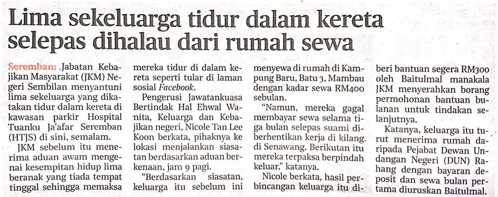 Tajuk :Lima sekeluarga tidur dalam kereta selepas dihalau dari rumah sewa