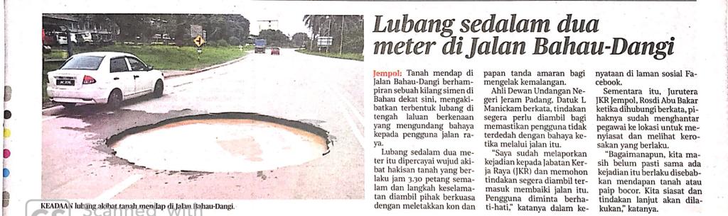 Tajuk :Lubang sedalam dua meter di jalan Bahau-Dangi