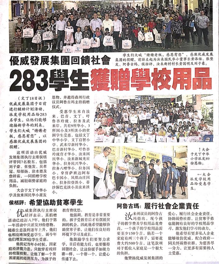 Tajuk :Seremban:YB Tuan Arul Kumar telah turun hadir ke upacara penyerahan sumbangan bekalan sekolah di beberapa sekolah di Nilai yang ditaja oleh Syarikat Univale Group.Tarikh Berita:19 Disember 2019