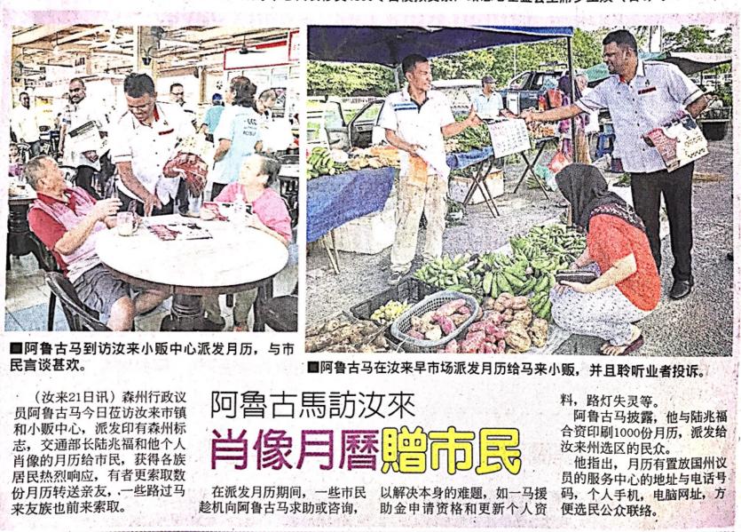 Tajuk :Nilai:YB Tuan Arul Kumar telah turun mengedarkan Kalendar 2020 di kawasan Nilai.