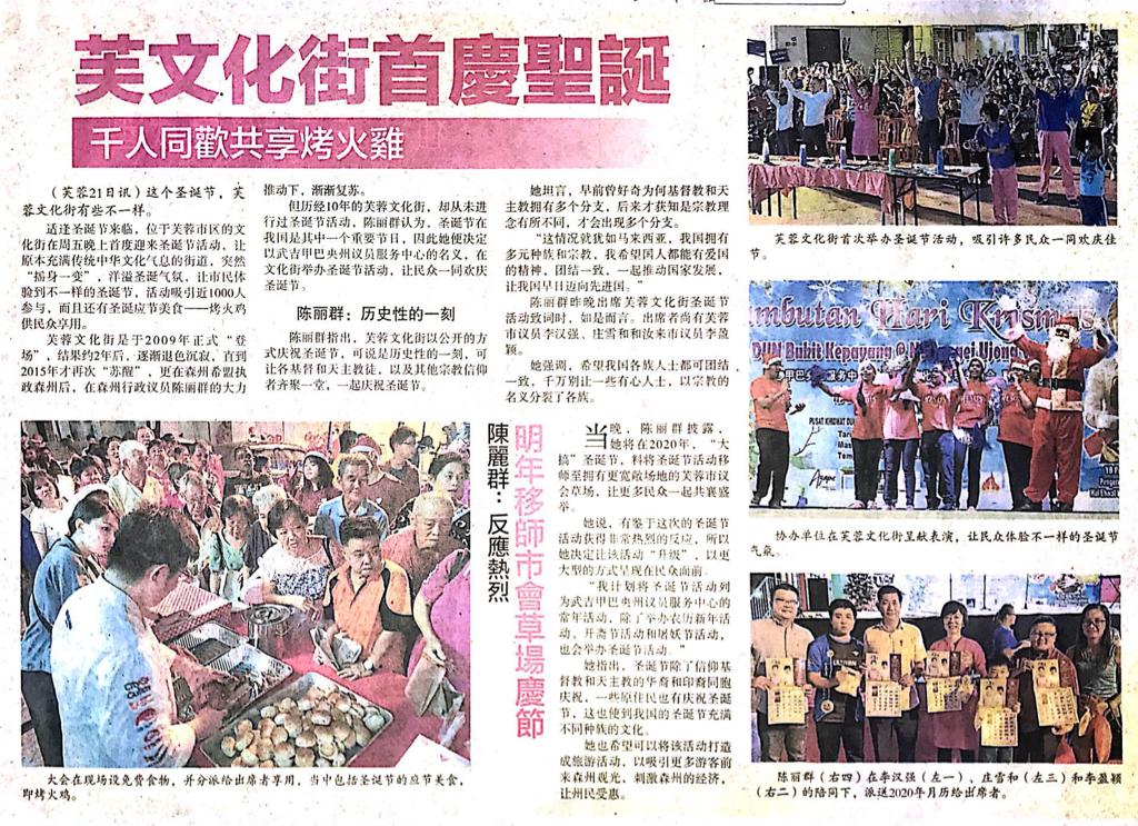 Tajuk :Seremban:YB Puan Nicole Tan Lee Koon telah hadir merasmikan Sambutan Hari Krimas DUN Bukit Kepayang@N9 Sg.Ujong Walk anjuran Pusat Khidmat DUN Bukit Kepayang dan Kelab Persiaran Sungei Ujong Seremban pada 20 Disember 2019,Jumaat.