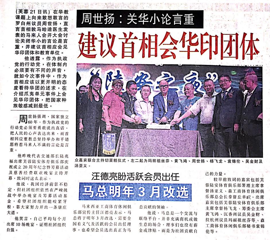 Tajuk :Seremban:YB Tuan Chew Seh Yong telah menghadiri Majlis Makan Malam Sempena Ulang Tahun ke-20 Kelab Rekreasi Wira Seremban.Turut serta hadir YB Tuan Ng Chin Tsai dan juga YB Puan Mary Josephine Pritt Singh.