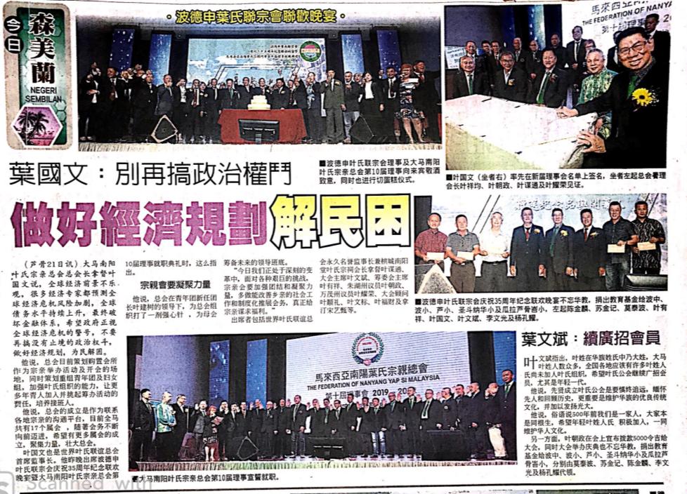 Tajuk :Seremban:YB Tuan Yap Tew Weng telah menghadiri Majlis Makan Malam Sempena Ulangtahun Ke-35 dan Mesyuarat Agung The Federation of Nanyang Yap Si Malaysia yang Ke -10.