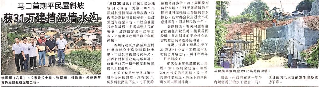 Tajuk :Bahau:YB Tuan Teo Kok Seong turun meninjau projek pembaikan tembok dan saliran parit untuk fasa pertama cerun perumahan awam bagi meningkatkan keselamatan pengguna jalan dan penduduk di kawasan Rumah Rakyat Bahau 1 & 2.