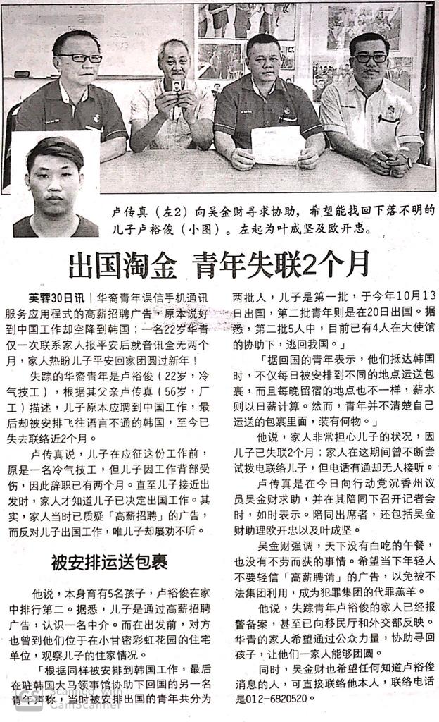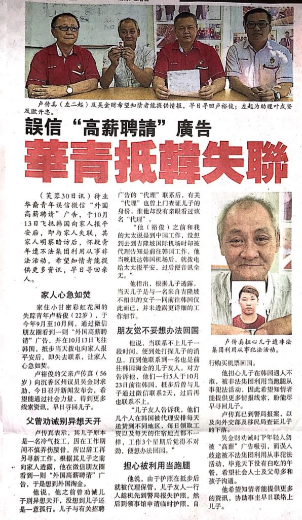 Tajuk :Seremban:Seorang bapa melaporkan kebimbangan mengenai anaknya telah lama tidak menghubungi keluarganya setelah pergi ke Korea Selatan untuk bekerja.
