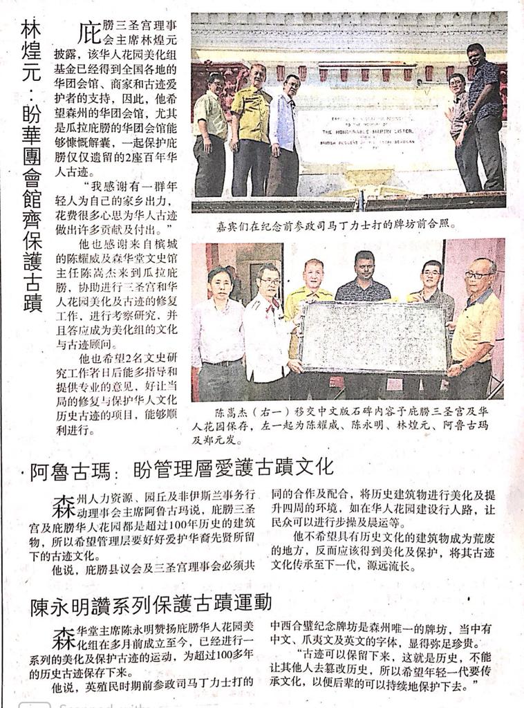 Tajuk :Kuala Pilah:YB Tuan Arul Kumar telah turun melawat Tokong Sam Seng Keong dan Taman Santai Cina Kuala Pilah,Tugu Martin Lister.